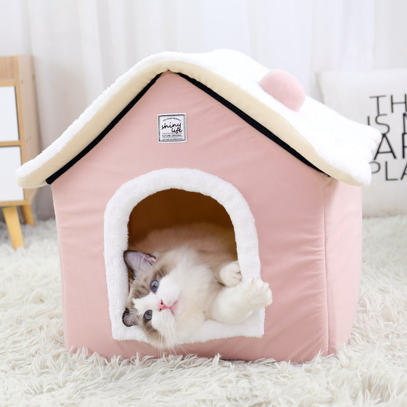 Cat shelter in winter is completely enclosed