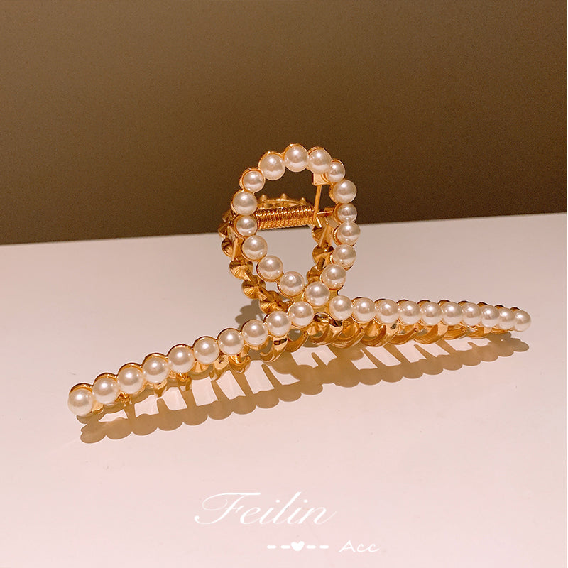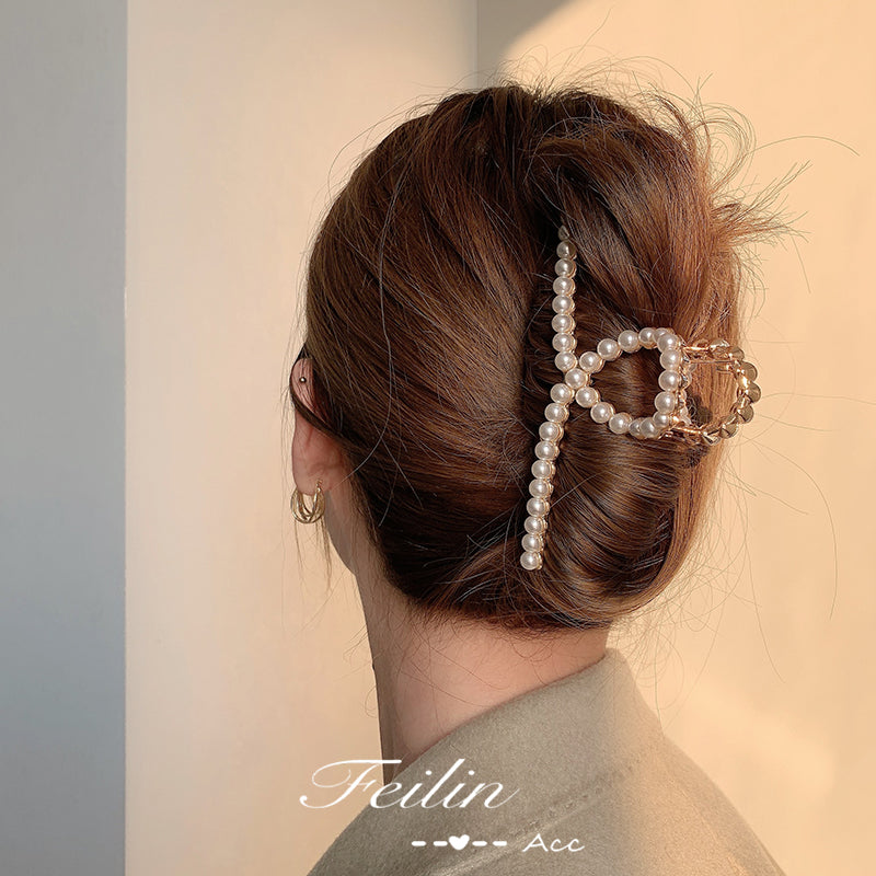 Clip headdress pearl hairpin back of head female hairpin large elegant temperament hairpin Korean shark clip