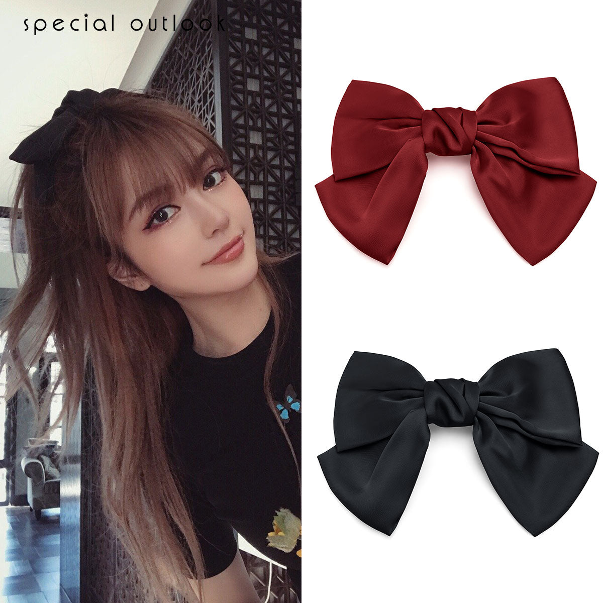 Black big bow hairpin net red new top clip hairband hair rope hairpin headdress hair accessories