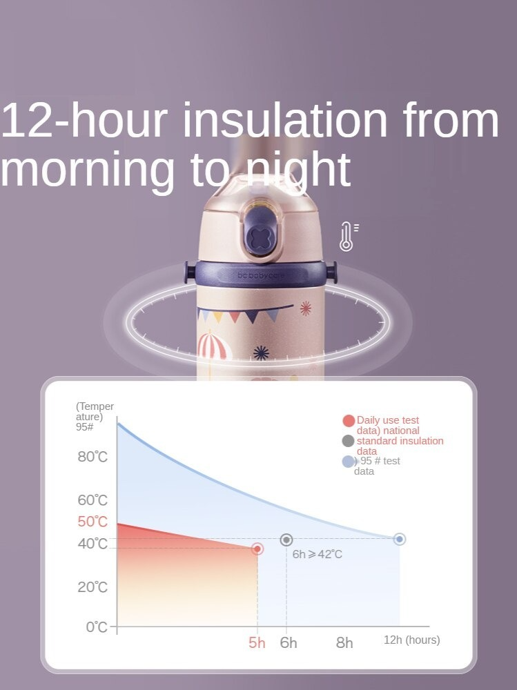 Babycare Children's Thermos Mug with Straw Drop-Resistant Carry out Baby Water Cup Baby Thermal Insulation Kettle
