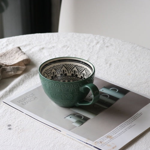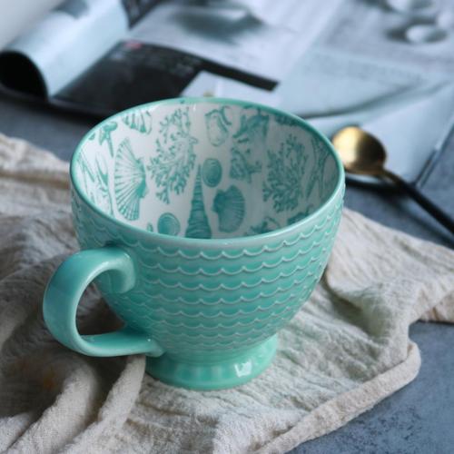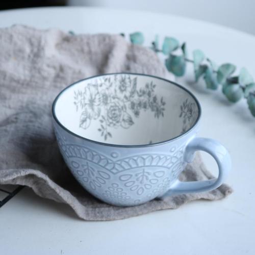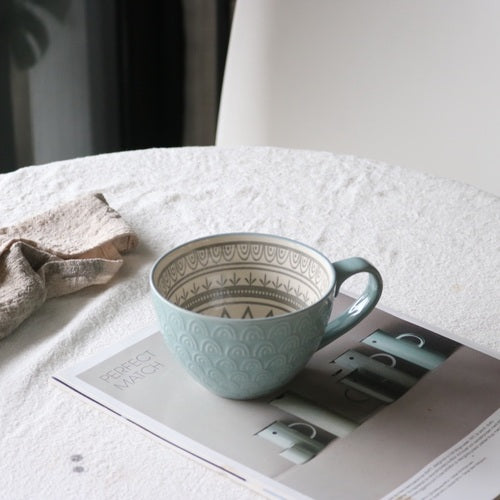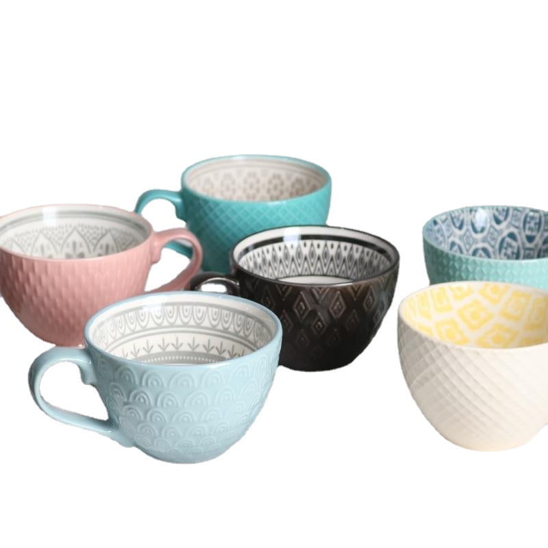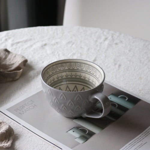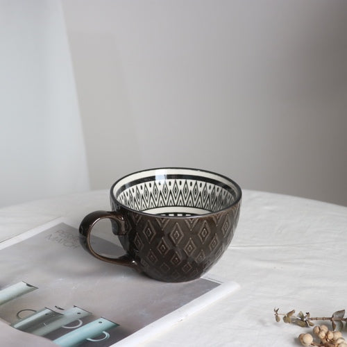 Ins Nordic Creative Ceramic Mug Milk Coffee Cup Large Capacity Breakfast Cup Men and Women Oatmeal Cup Flaw