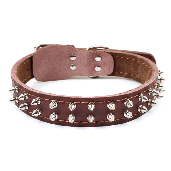 Cow leather rivet dog collar double row spike collar