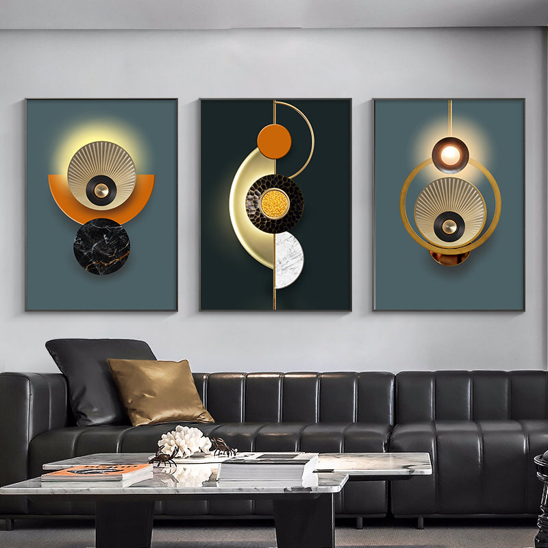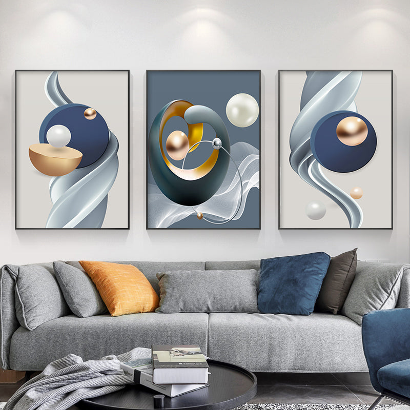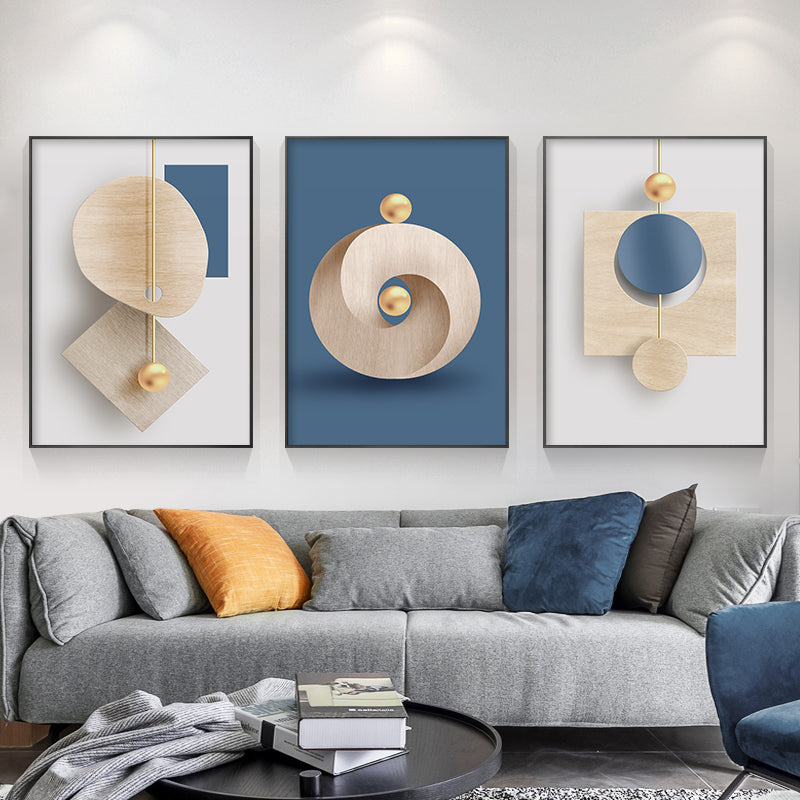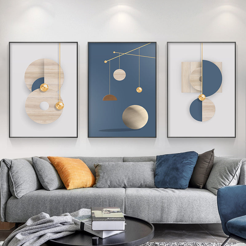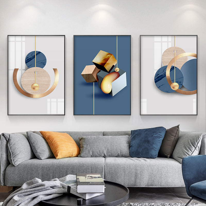Abstract Geometric Living Room Triple Decorative Painting Modern Simple and Light Luxury Sofa Background Wall Restaurant Wallpaper Nordic Paintings